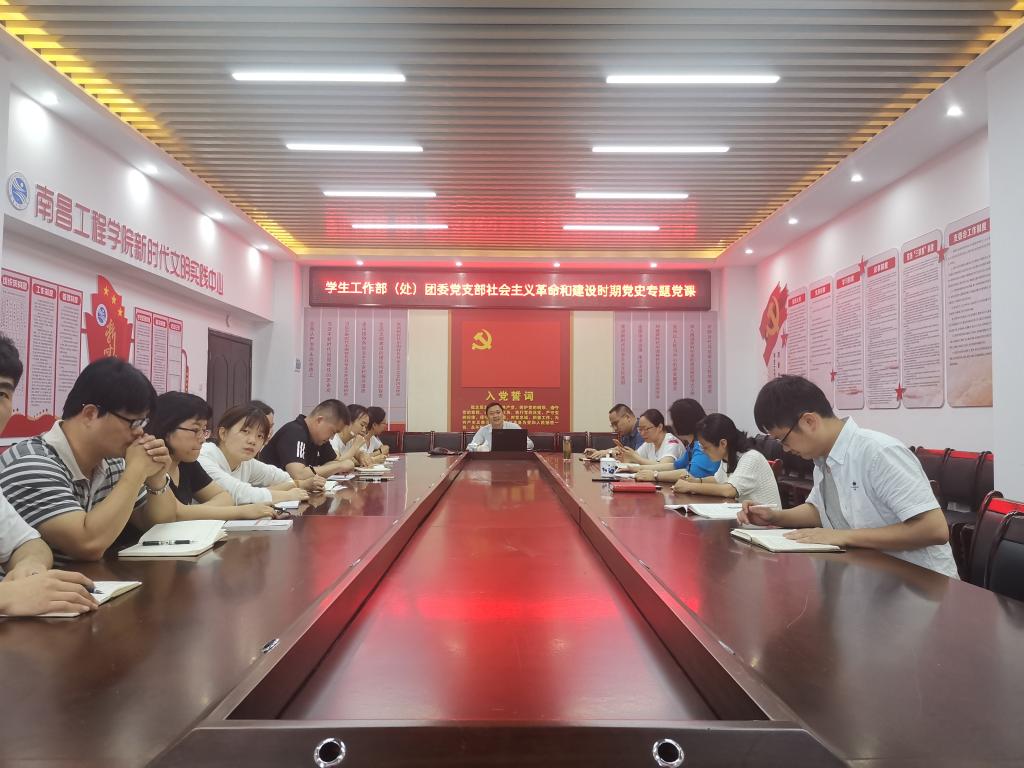 5月11日,学生工作部(处)团委党支部在大学生活动中心A204党员活动室开展“社会主义革命和建设时期”党史专题党课。