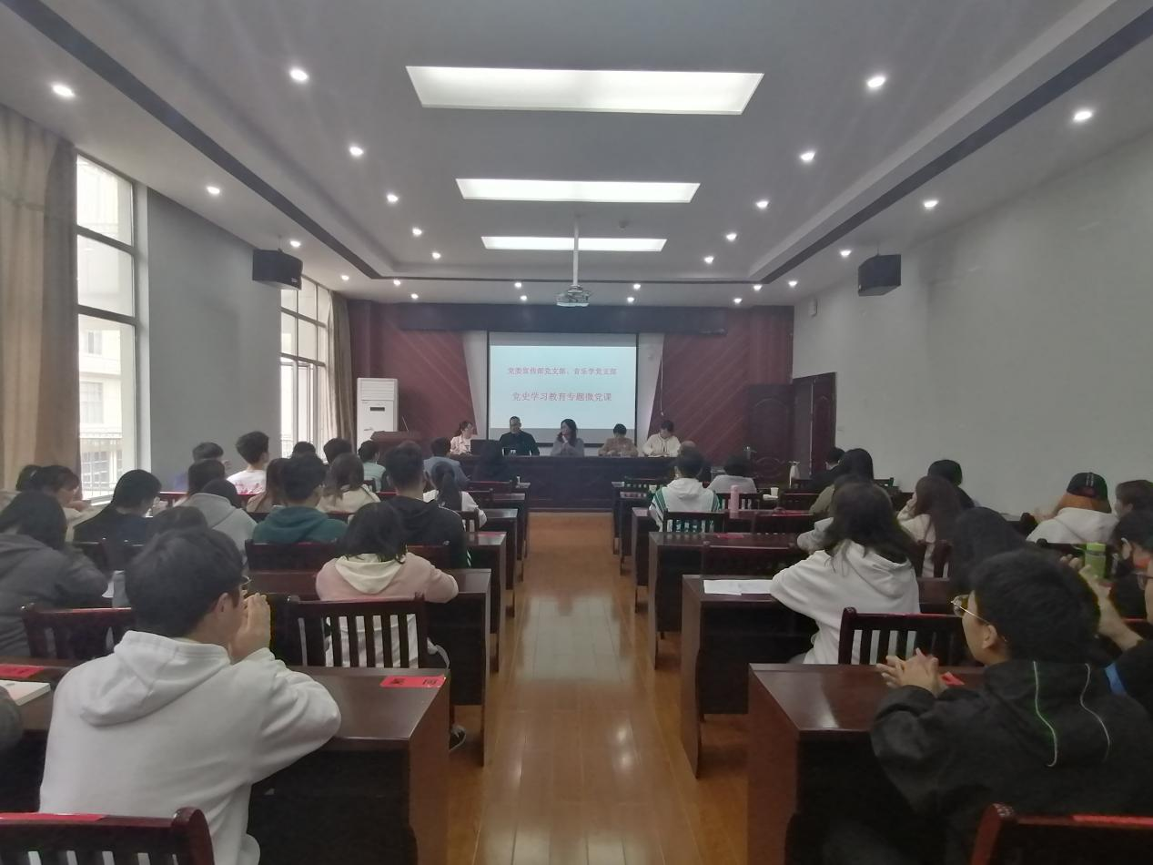 4月6日,党委宣传部党支部与结对共建的音乐学教研室党支部在艺术楼230会议室开展党史学习教育专题宣讲。校党委委员、“十百千”宣讲团成员、党委宣传部党支部书记洪恩强作题为“从党史中读懂共产党人的初心”专题党课。人文与艺术学院党委负责人、共建党支部全体党员和处级干部联系班级学生参加活动。