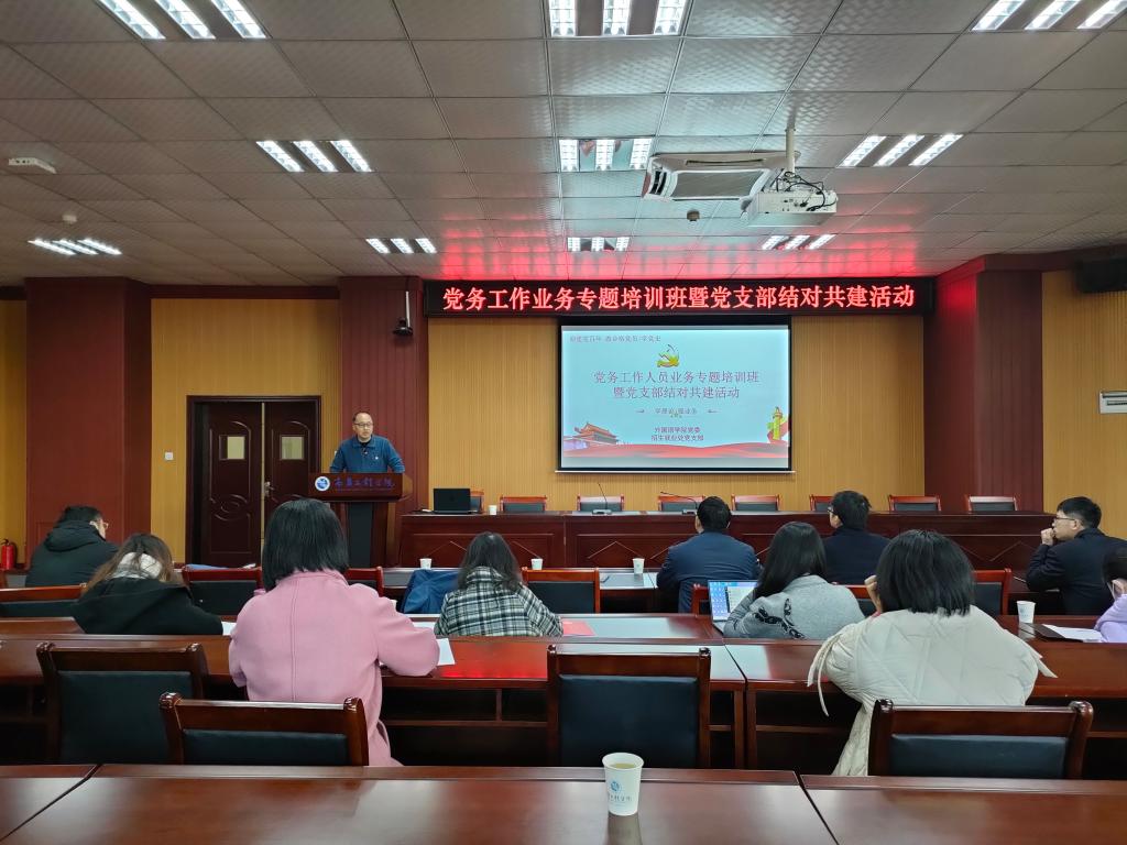 为加强基层党支部之间的联系,不断增强基层党组织活力。1月13日,招生就业处党支部与外国语学院第二教工党支部开展党务工作专题培训班暨党支部党建结对活动。外国语学院党委书记宋志刚,招生就业处全体党员,外国语学院全体党务工作者和第二教工党支部党员教师参加了会议,宋志刚主持会议。