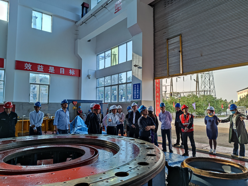 最后,大家来到了江西"八五"重点工程——修水县东津水库开展水文化教育。在工作人员带领下,大家参观了工程枢纽建筑物的拦河坝、开敞式溢洪道、厂房机组和中央控制室,在厂房,大家通过参观工人正在做机组检修,了解了水轮发电机的结构和发电原理。