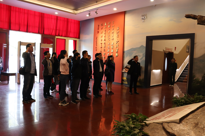 大家首先来到了全国爱国主义教育示范基地——秋收起义修水纪念馆参观,纪念馆里大量的图文影视资料讲述了湘赣边界秋收起义爆发的背景,工农革命军第一军第一师的组建和中国共产党的第一面军旗在修水设计、制作、升起等历史资料,讴歌了秋收起义为开创井冈山革命根据地,使星星之火燃遍全中国的历史功勋,展示了毛泽东和参加秋收起义的老一辈无产阶级革命家的丰功伟绩。党员在庄严肃穆的大厅伟人雕塑前重温了入党誓词。