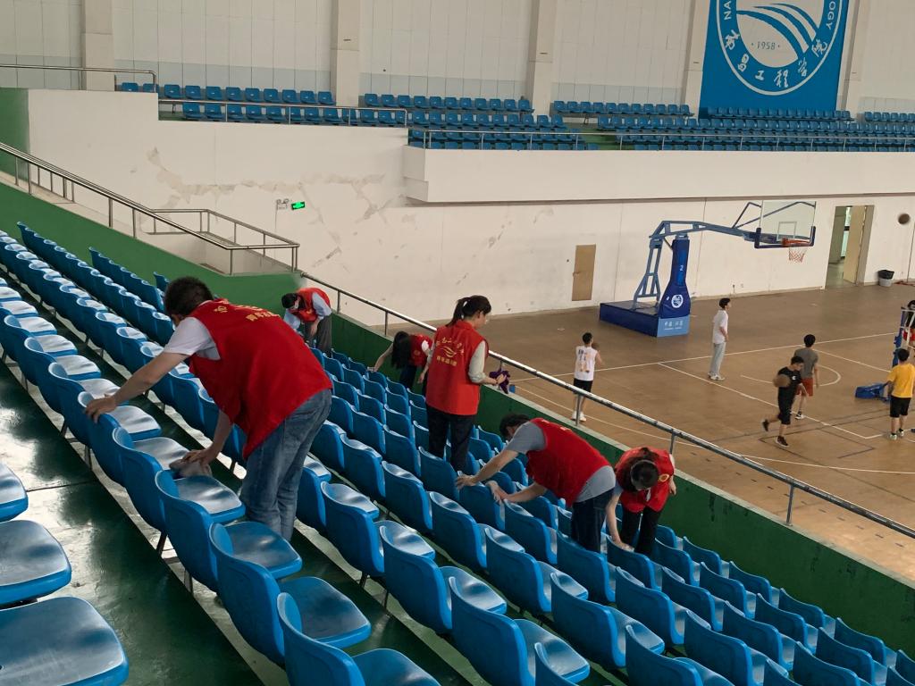 5月27日下午,党委(院长)办公室党支部在体育馆开展“红色先锋”美校清洁志愿服务活动。党员同志们自备水桶抹布,对体育馆看台座位进行擦拭和清洗。
