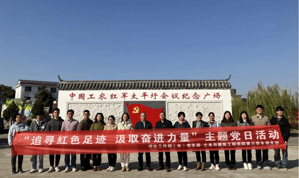 11月30日,学生工作部(处)党支部联合土木与建筑工程学院第三学生党支部,赴樟树市开展“追寻红色足迹 汲取奋进力量”主题党日活动,探访革命旧址,重温光辉历程。