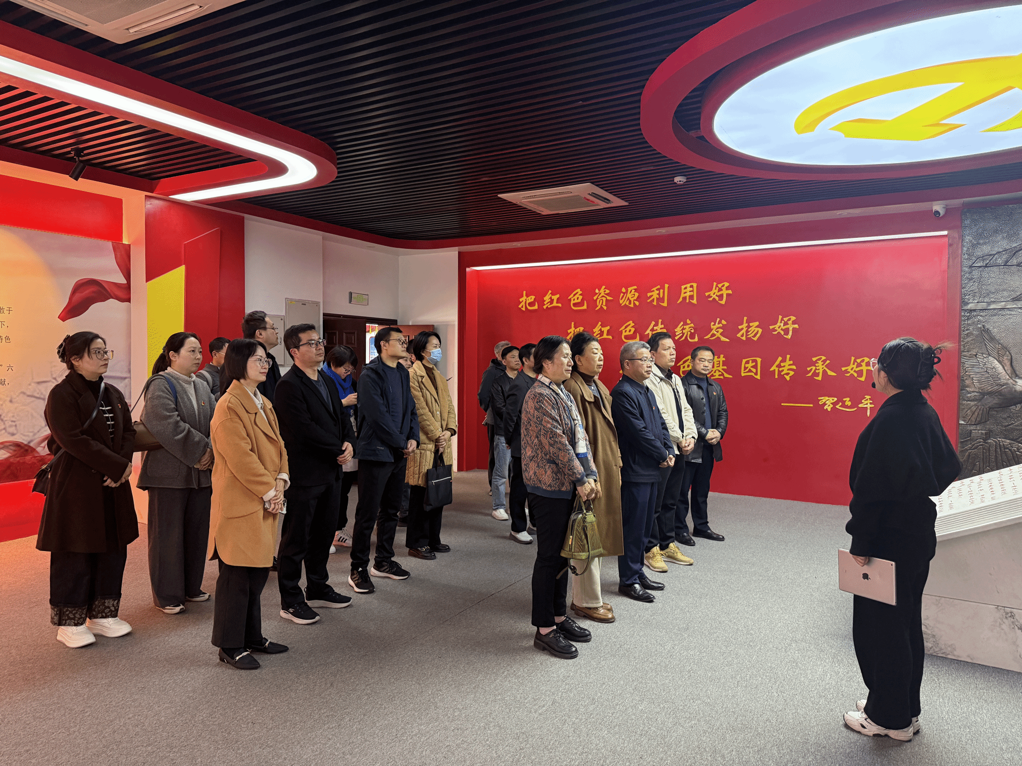 在江西九江组织干部学院王经燕烈士纪念馆,大家怀着崇敬的心情,依次参观了“不凡身世、追求真理、家国情怀、见危授命、碧血丹心、红色传承”六大展区,认真观看历史图片,阅读红色家书,深入学习王经燕烈士不忘初心、舍家为国的光辉事迹。随后,全体党员来到王经燕烈士铜像广场,大家驻足瞻仰、默哀缅怀,表达对王经燕烈士崇高敬意。