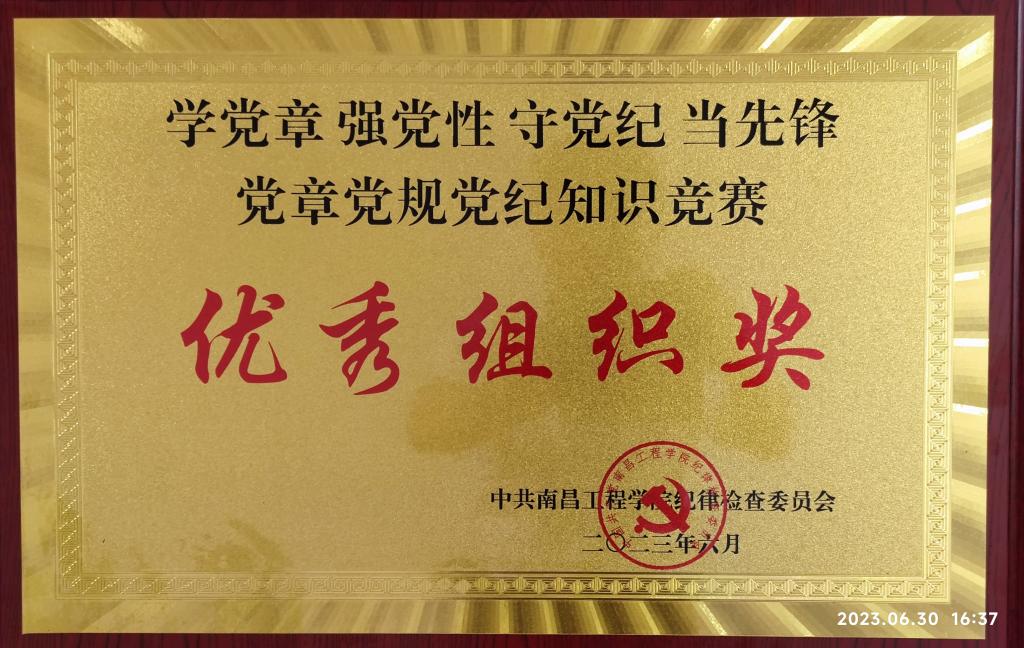 近日,在校纪委组织的党章党规党纪知识竞赛活动中,机关党委参赛选手凭借扎实的党章党规党纪知识在比赛中发挥出色,总分排名第三,获得二等奖,机关党委获“优秀组织奖”。