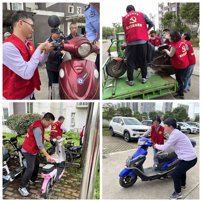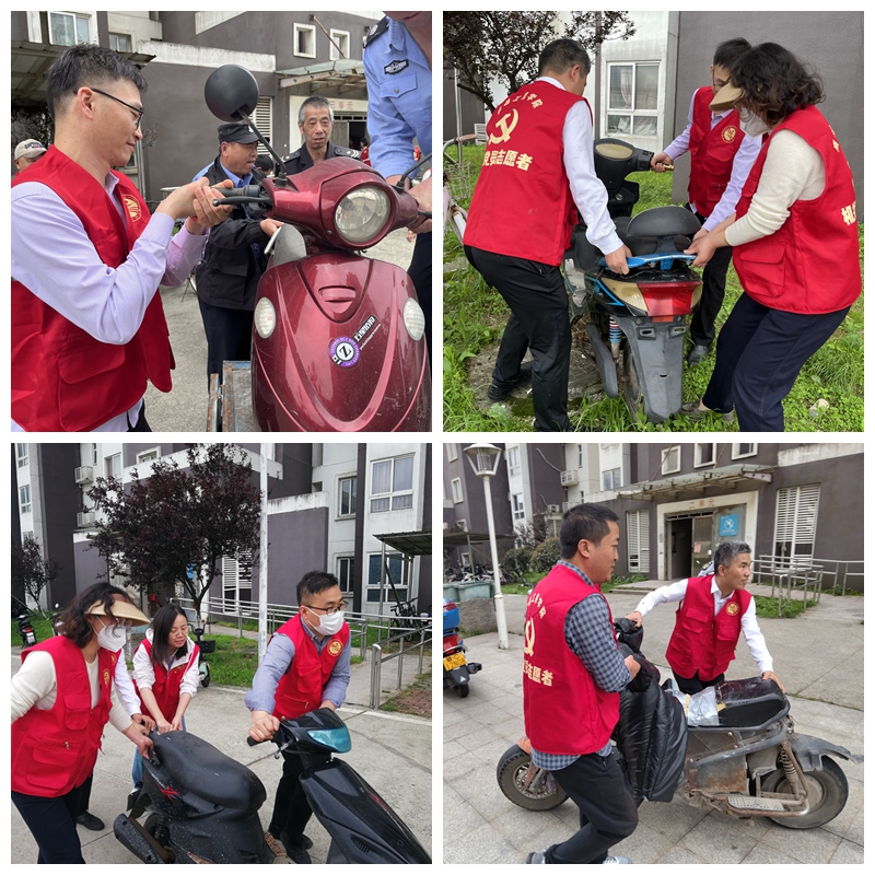 5月23日下午,机关党委结合“我为群众办实事”实践活动,联合保卫处(部)共同开展“僵尸电动车”清理整治行动,主要围绕在公租房8-9栋开展清理僵尸电动车,20余名党员参加了此次志愿服务。