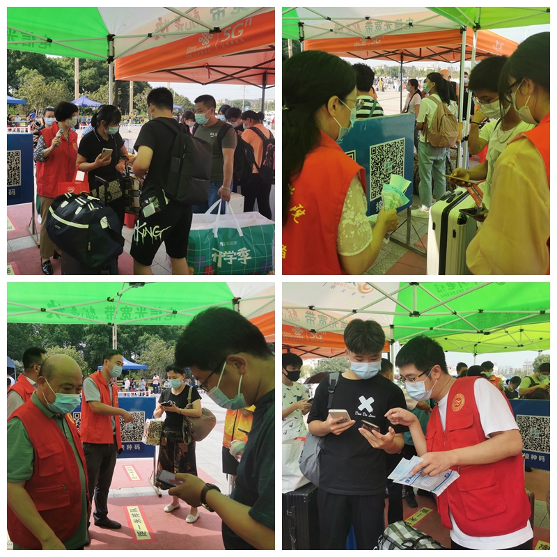 活动现场,将党员干部志愿服务队分成五组,分别对进入学校的新生和家长进行了体温检测、登记,发放口罩,帮助扫描昌通码和行程码,检查省外新生和家长48小时核酸检测报告,耐心向家长解释今年新生报到流程和有关要求,帮助新生搬运行李等。