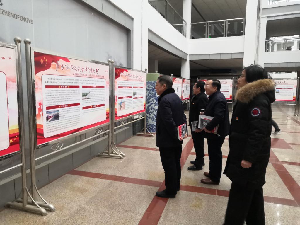 为宣传先进典型,充分发挥党员榜样示范带头作用,12月15日,机关党委在行政楼一楼大厅举办防汛救灾一线8名党员先进典型事迹展,校党委书记徐兰宾,副校长汪胜前、樊后保,以及机关过政治生日的20名党员参观展览。