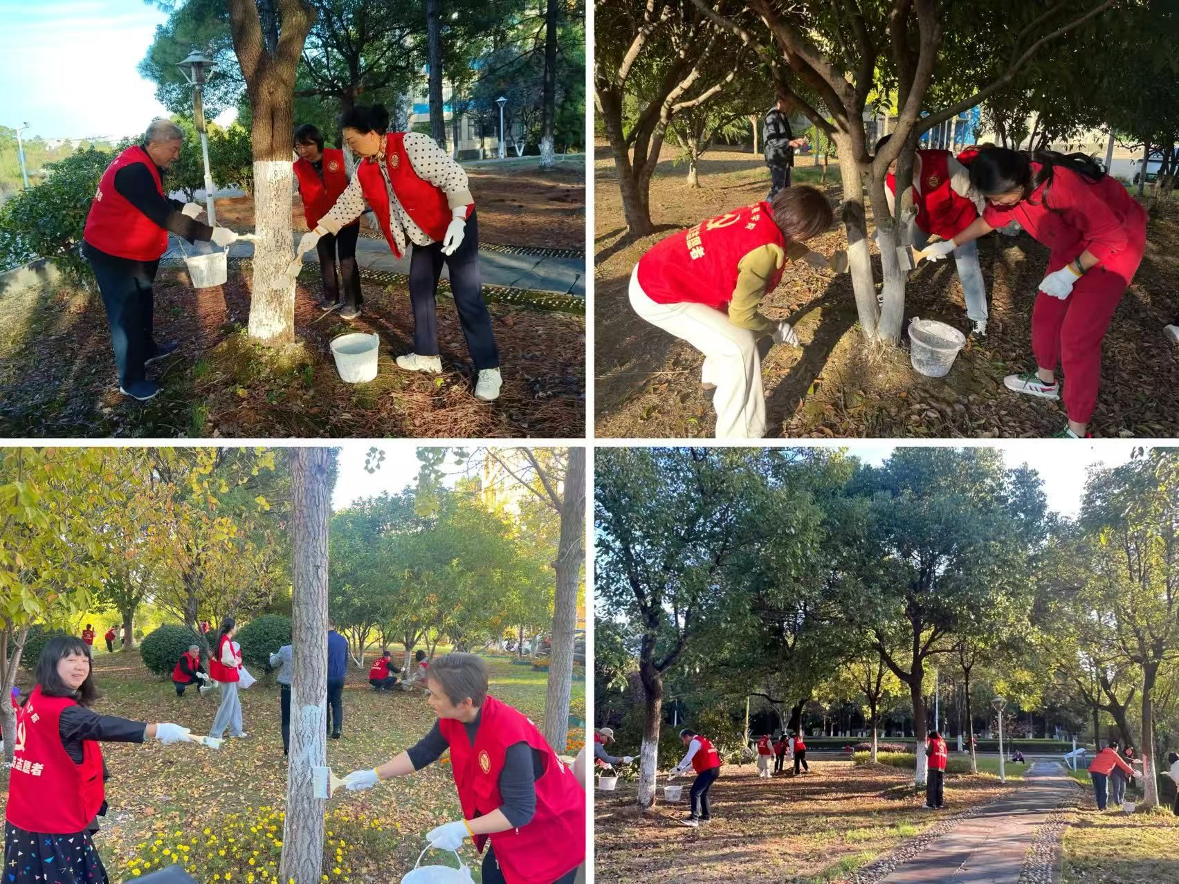 11月14日下午,机关党委组织开展了“躬身劳动实践 擦亮先锋底色”党员志愿服务活动,对行政楼周边树木进行“刷白”养护,助力树木防虫防冻、安全越冬。机关70余名党员干部参加活动。